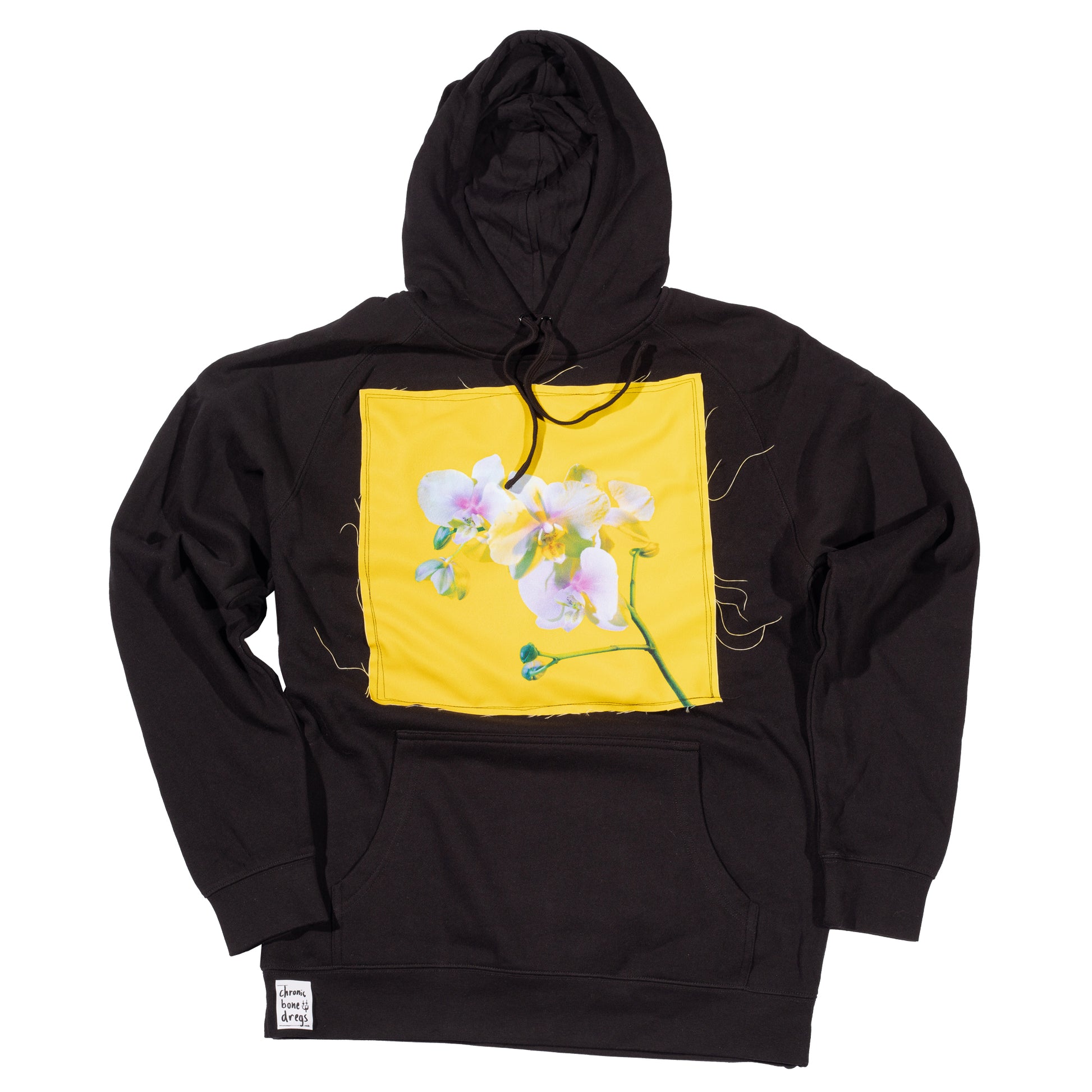LARGE Hoodie with 'ACID FLOWER' art print applique sewn to front.